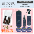 TOP清水香(業務用消臭除菌スプレー) 清水香 ギフトボックス 3本セット<シトラス> 価格: ¥5,000 (税込 ¥5,500) 販売期間: 数量: 個 在庫 在庫あり 清水香を贈答品として送りたい! お客さまの声から「紙箱」に入ったギフトボックスが登場! 50mL、250mL、495mLの3本セットになります。 通常5,610円(税込)のところ、紙箱に入って5,500円(税込)でご案内いたします。 ご自分用として、贈り物として最適なセットです!